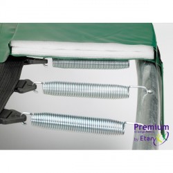 Trampoline machen Spaß und halten fit, daher findet man Outdoor-Trampoline in immer mehr Gärten. Damit das Springen und Hüpfen und Purzelbäume-Schlagen auch stets sicher ist, hat das Etan Gartentrampolin Premium Platinum eine extra dicke und extra breite Schutzabdeckung am Rand. Die dicke Polsterung reicht weit über die Federn hinaus.Trampolin für den Garten mit hohem SprungkomfortDank des Diamond-Feder-Systems hat das Etan Gartentrampolin Premium Platinum auch einen besonders hohen Sprungkomfort. Die Verbindungsstücke zwischen der Sprungmatte und den Federn sind unterschiedlich lang. Dadurch wird die Sprungkraft besser verteilt. Sie Springen auf dem Etan Gartentrampolin Premium Platinum höher, leichter und weicher bei deutlich weniger Krafteinsatz. Die hochwertige Qualität des Trampolins für den Garten hat auch den TÜV und die strenge American Society of Testing and Materials überzeugt.Outdoor-Trampolin mit hoher LebensdauerDer Rahmen des Outdoor-Trampolins ist sehr stabil und belastbar. Außerdem sind alle Rohre doppelt verzinkt und gegen Korrosion geschützt. Die Ummantelung der Randpolster ist aus besonders strapazierfähigem Material, das dem einer LKW-Plane gleicht.