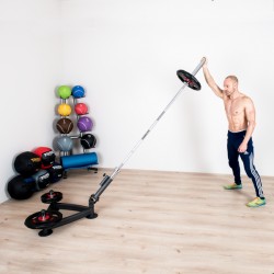 Dreidimensionales Krafttraining mit dem Taurus Core TrainerMit dem Taurus Core Trainer fordern Sie Ihre Muskeln nicht mehr nur einseitig, sondern gleich auf vielfache Art und Weise. Einfach eine Langhantelstange in der Vorrichtung platzieren und schon haben Sie die Möglichkeit , dynamische Druck-, Zug- oder Drehbewegungen über einen maximalen Bewegungsradius auszuführen, denn das verbaute Drehgelenk des Taurus Core Trainer ermöglicht sowohl horizontale als auch vertikale Schwenkungen. Die dabei wirkenden Kräfte beanspruchen die Muskulatur somit nicht isoliert, sondern beanspruchen gleich eine Vielzahl unterschiedlicher Muskelgruppen. Insbesondere Rücken-, Bauch- und Hüftmuskulatur, werden bei diesem Training hervorragend angesprochen; diese auch als Core-Muskulatur bezeichneten Muskelgruppen bilden die Basis für zahlreiche Alltagsbewegungen sowie für komplexe Ganzkörperübungen.